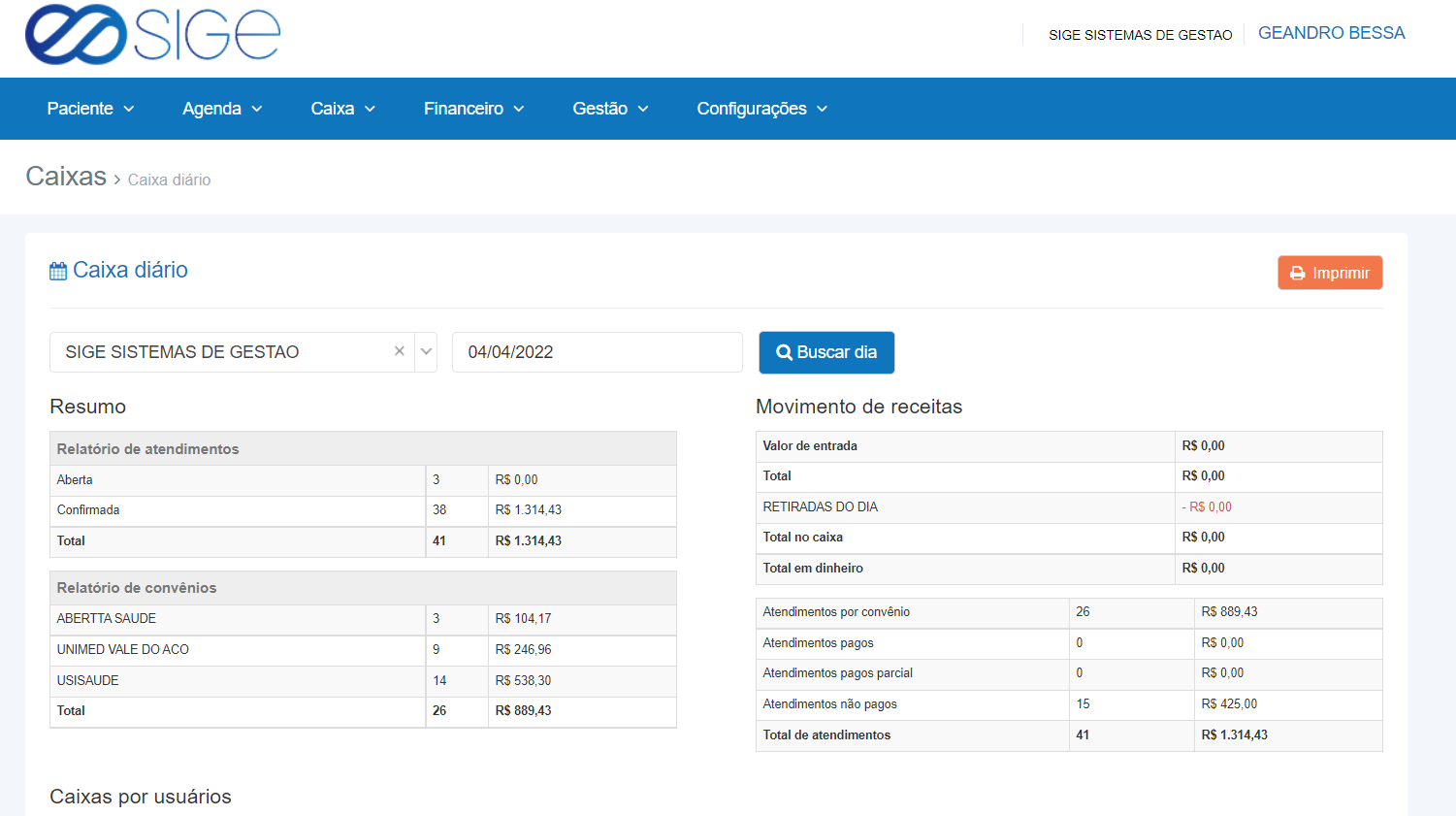 No caixa diário você encontrará o relatório do caixa por data, com toda a movimentação daquele dia.