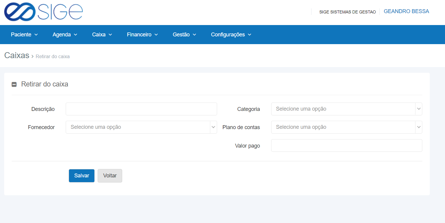 Em retirada do caixa é possível incluir as despesas do dia a dia.